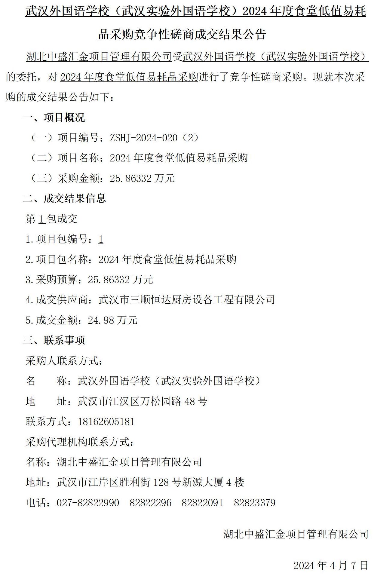 成交结果公告
