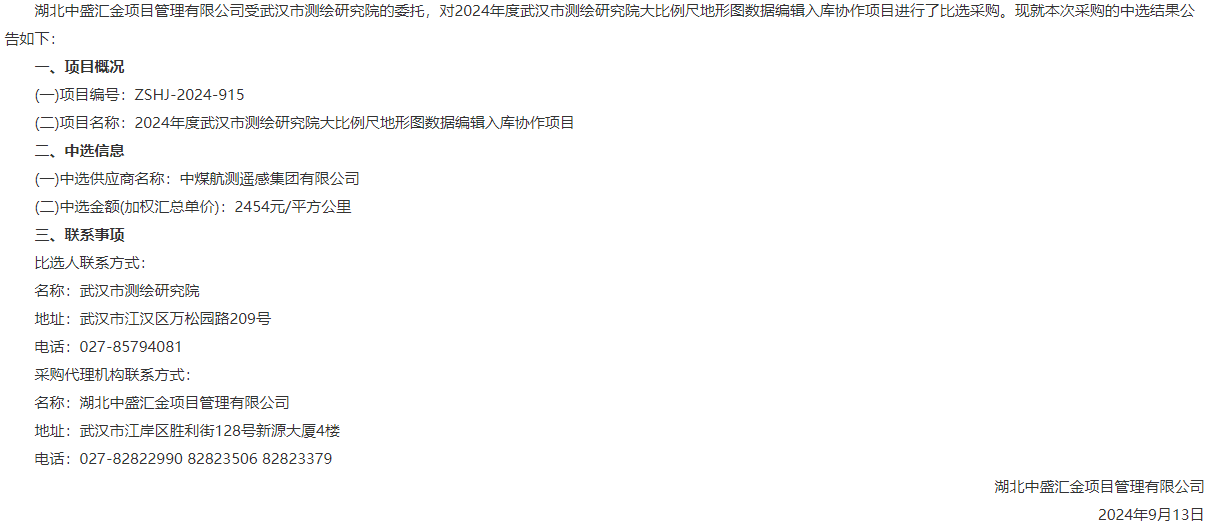 武汉市粮油储备有限公司2024年粮库机械设备购置中标公告