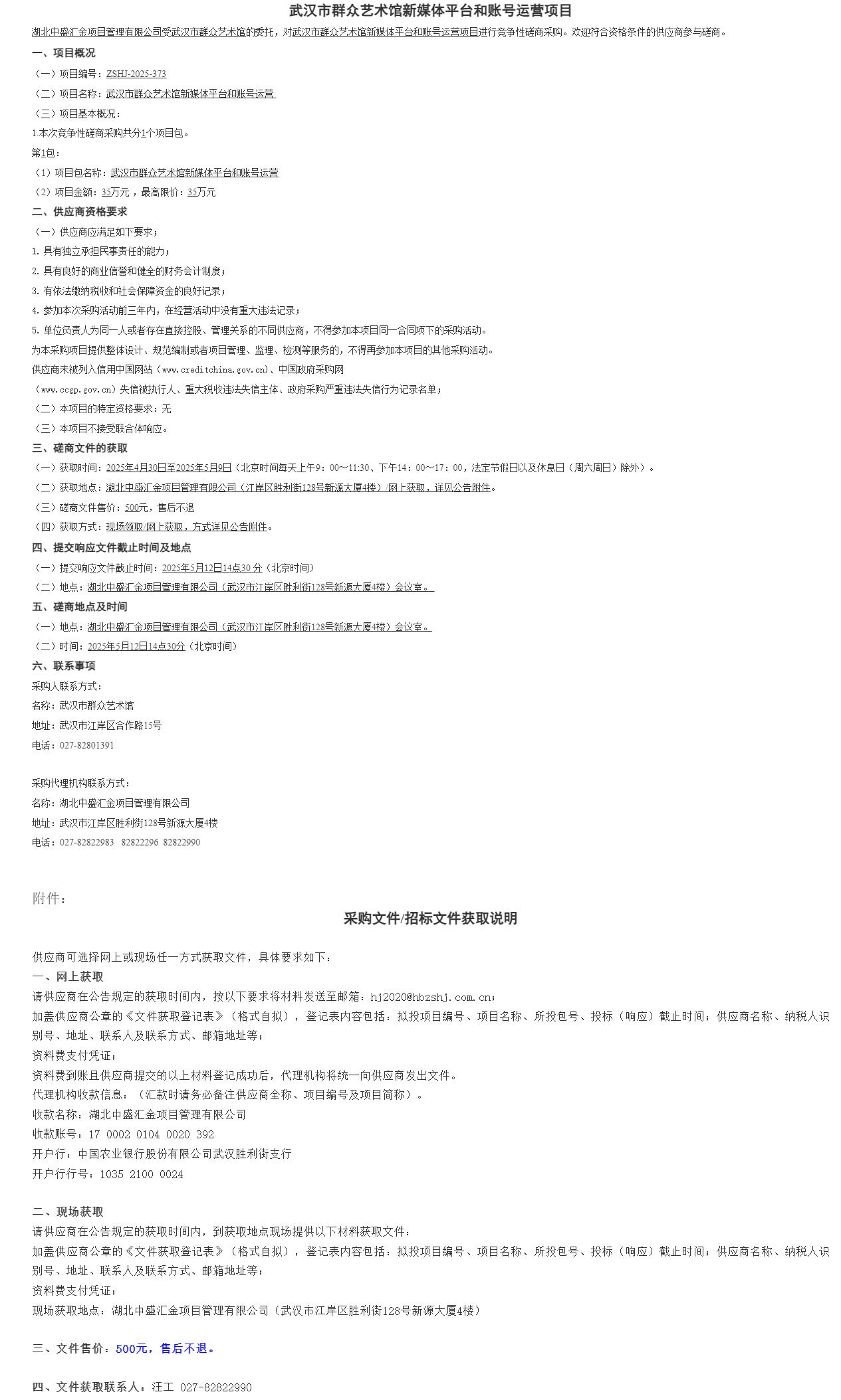武汉市群众艺术馆新媒体平台和账号运营项目竞争性磋商公告