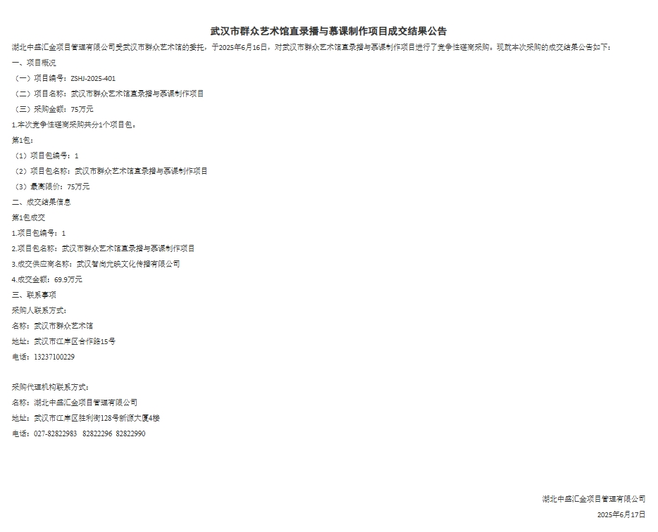 武汉市江滩管理办公室2025年武汉江滩石材维修劳务服务成交结果公告