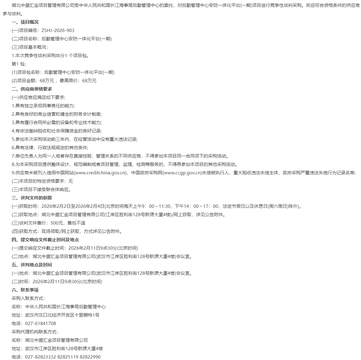 武汉市工业经济保障中心2026年度机关食堂服务项目竞争性磋商公告